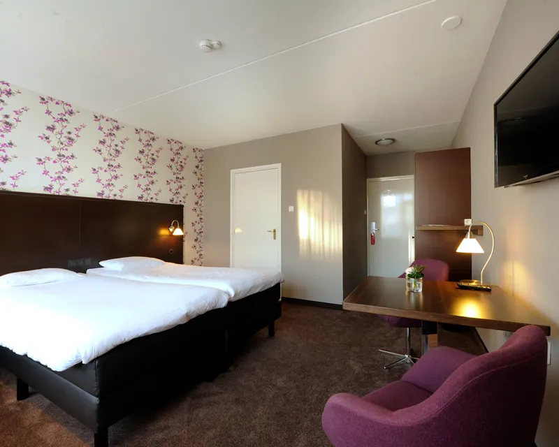 Daarnaast beschikt de kamer over een zitje, koffie- en theefaciliteiten, een flatscreen TV, een telefoon en een balkon. Ook vindt u op de kamer een QR-code van guestcompass voor alle hotelinformatie. Deze informatie vindt u ook via deze link.